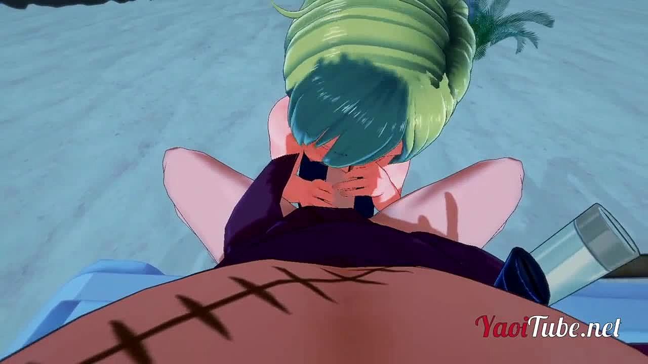 Zoro and Sanji on the beach: 'Want a handjob or blowjob?' in One Piece yaoi.